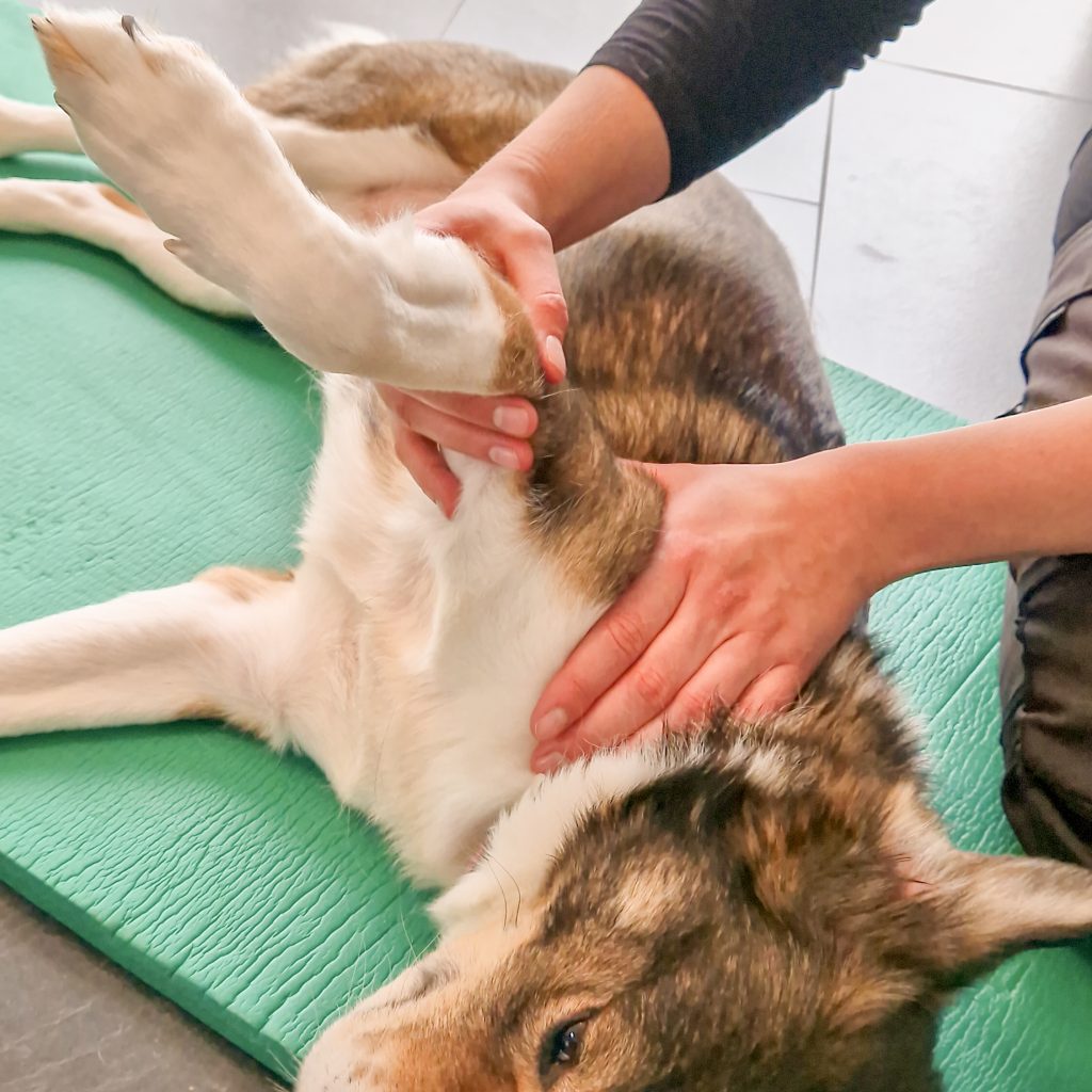 Beim Termin schaue ich mir deinen Hund im Stehen und in der Bewegung an. Anschließend führe ich Gelenksfunktionstestungen durch und untersuche dein Tier manuell.